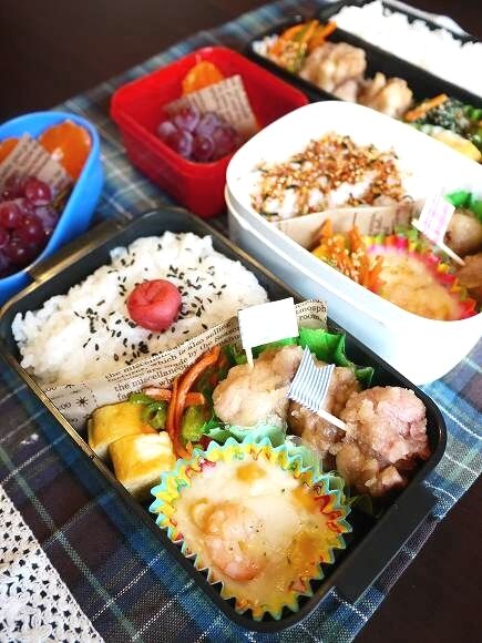 今日のお弁当。 今日は長男が久し振りのお弁当。いつもは次男と旦那だけだけど、自分もお弁当を食べられるって事で楽しみにしてました。お弁当はたいしていつもと変わらないけど、フルーツにぶどうとみかんをin!今の季節の温室みかん、高けど奮発しました。めっちゃ小粒ですが。喜んでくれ ... 2012/09/14 続きを読む
