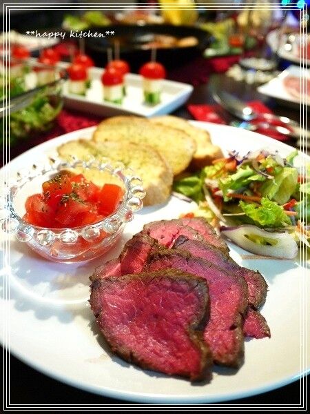 クリスマスの食卓♪2012 メリークリスマス~^^昨日のクリスマス・イヴに家でクリスマスパーティーをしました。何かたいして毎年変わり映えがありませんが・・・去年はチキンだったところを今年はローストビーフにwwwあとはブルスケッタとサラダをワンプレートで。水菜とベーコンとエリンギのサ ... 2012/12/25 続きを読む