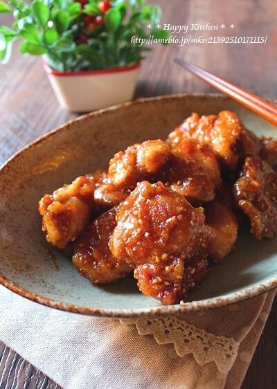 ①鶏肉をひと口大に切り、塩こしょうを振って片栗粉をまぶす。★は合わせておく。油を熱したフライパンで皮面を下にして焼く。