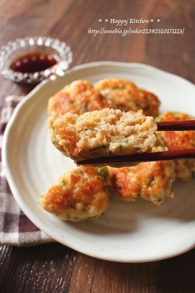 ①ボウルにはんぺんを入れて手で握りつぶし、そこに残りの材料全てを入れてよく捏ねる。適当な大きさに分けて丸める。