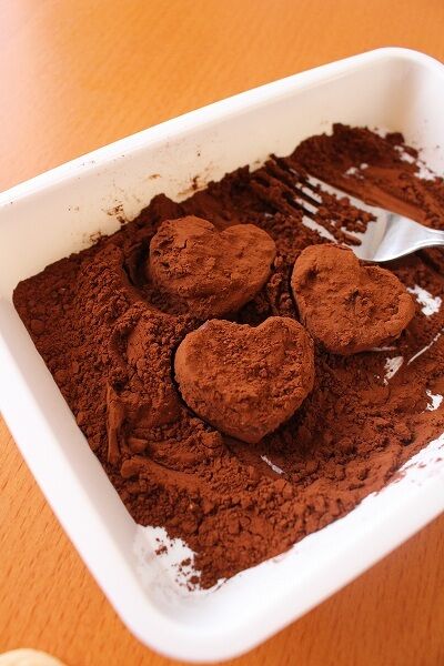 ココアをまぶすとコロコロのトリュフが出来ます♪