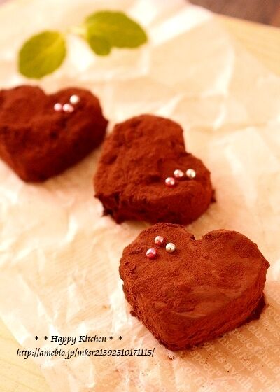 型抜きして余ったチョコレートは、丸いトリュフにするといいです^^