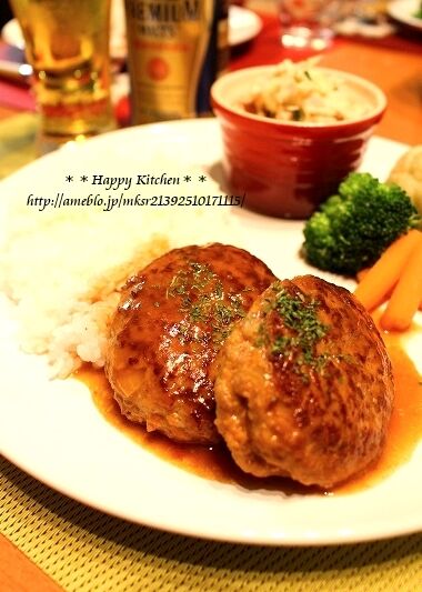 この煮込みハンバーグとポテトサラダって言うのかもな~と