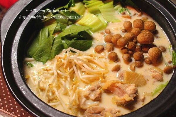 鶏肉と青梗菜の豆乳鶏味噌鍋