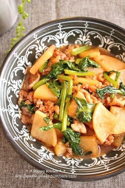 大根と小松菜を生姜風味で甘辛く味付けして