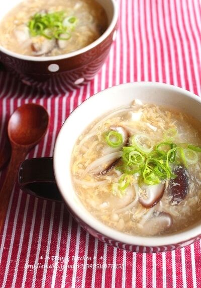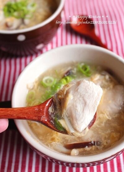 ②沸騰したら片栗粉をまぶした鶏肉と椎茸、えのきを入れて4~5分ほど煮込み、柚子胡椒を加えて溶けたら※の水溶き片栗粉を入れて素早く混ぜ、とろみがついたら溶き卵を入れてゆっくり混ぜる。