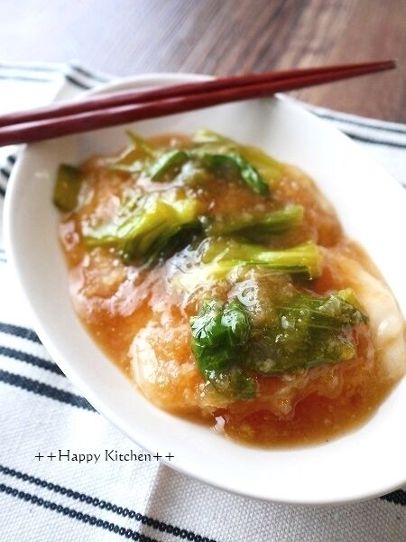 ①青梗菜は適当な幅に切り、大根おろしは擦る。★の材料を全て合わせてよく混ぜる。