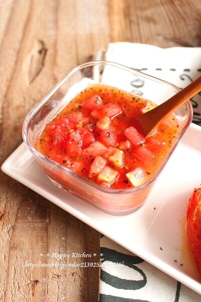 くり抜いた部分のトマトは細かく切ってブルスケッタに。