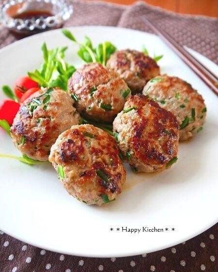 ①豚挽き肉に★を全て加えて粘り気が出るまでよく混ぜる。刻んだ細ネギを加えて全体に混ぜ、12等分にして丸め、形を整える。