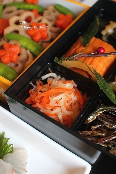①大根と人参は太めの千切りにしてボウルに入れ、塩を振って混ぜしばらく置く。しんなりしたら水で洗って水気をしっかり絞る。