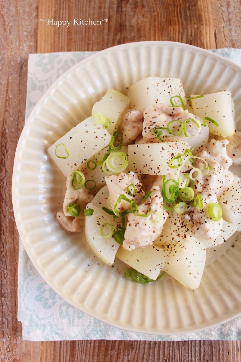 鶏むね肉ももっちもちの塩大根です。