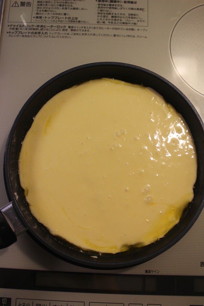 フライパンの側面にあまり生地が流れないようにさえすれば