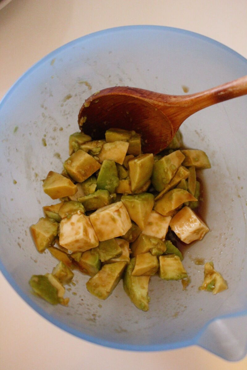 ②ボウルにアボカドとクリームチーズ(小さく切って)と①の※を半量ほど入れて混ぜ、