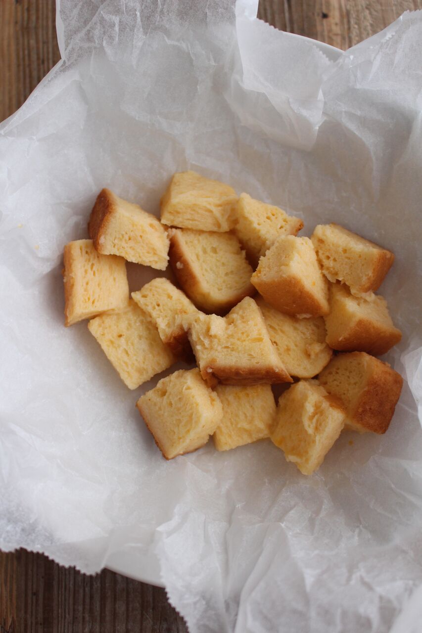 ①食パンは縦横それぞれ4等分に切って合計16切れになるようにする。