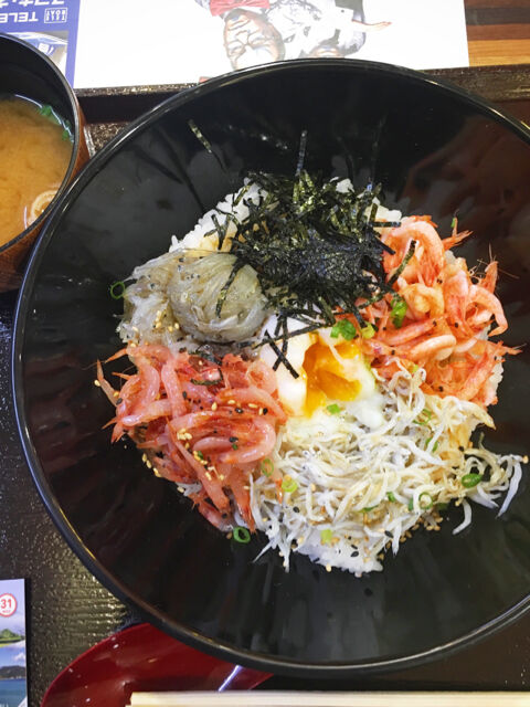 生しらす、釜揚げしらす、生の桜海老、温泉卵ーー!