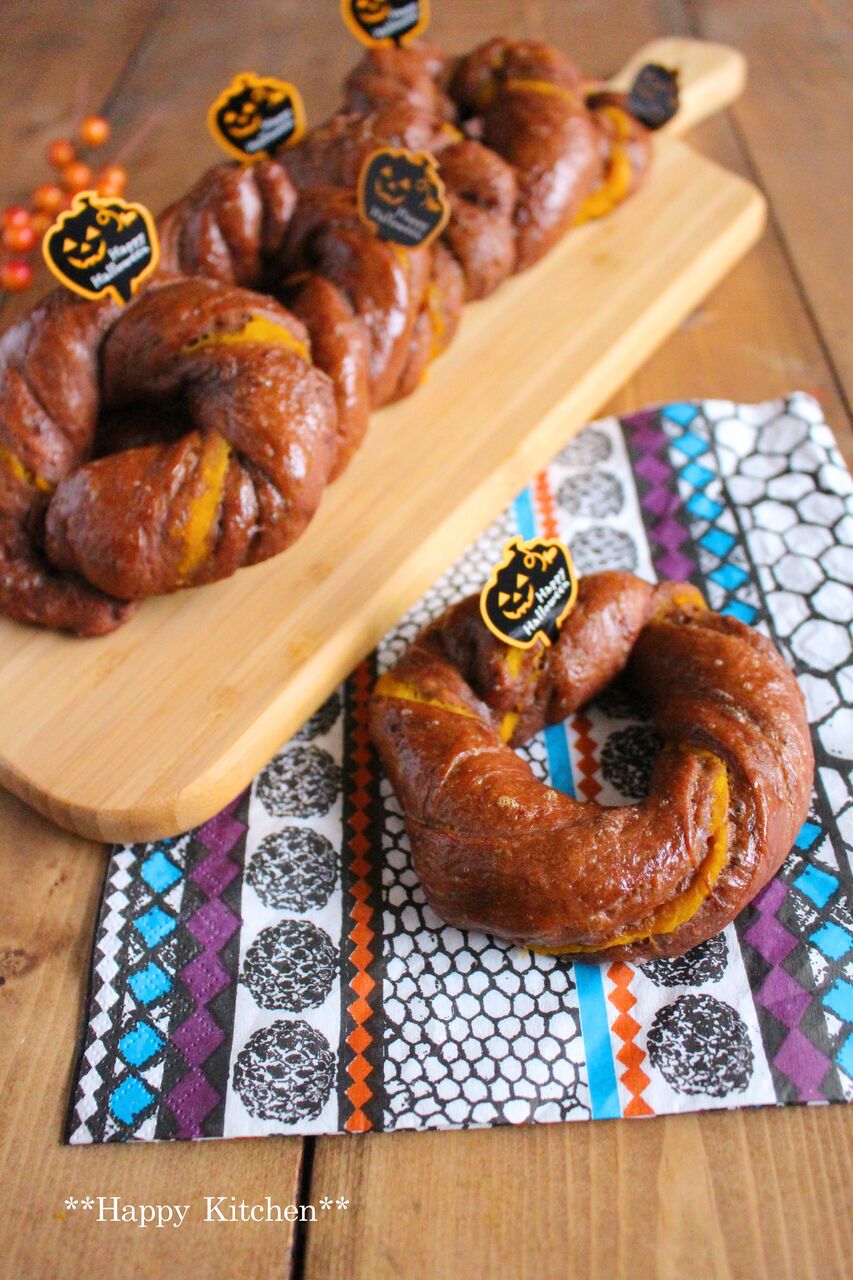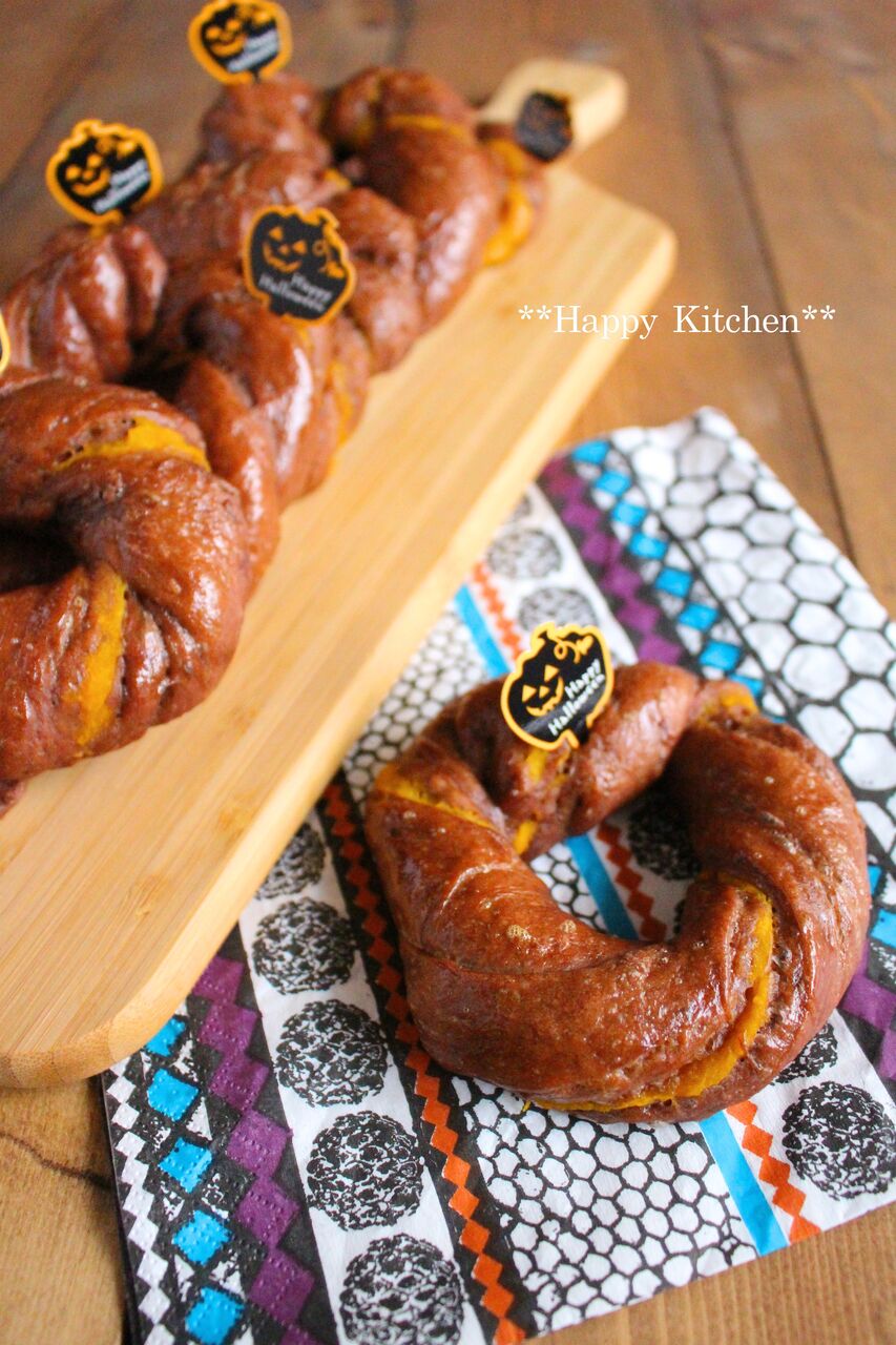 「かぼちゃを使った2色のねじりパン」「リース型」