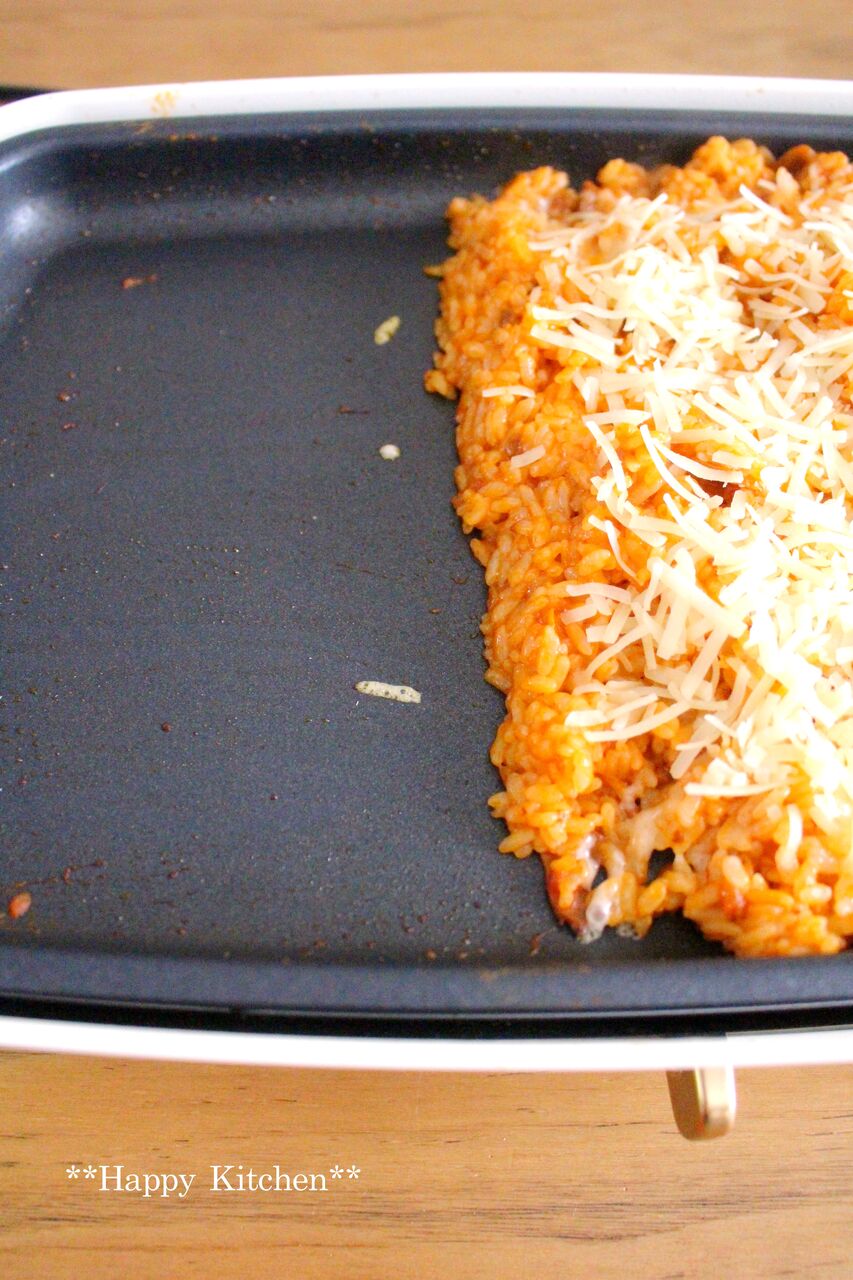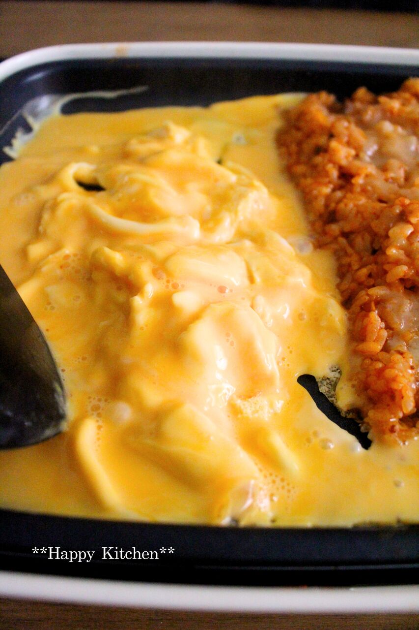 卵を乗せてオムライス風にしてみましたが、卵も一緒にホットプレートで。