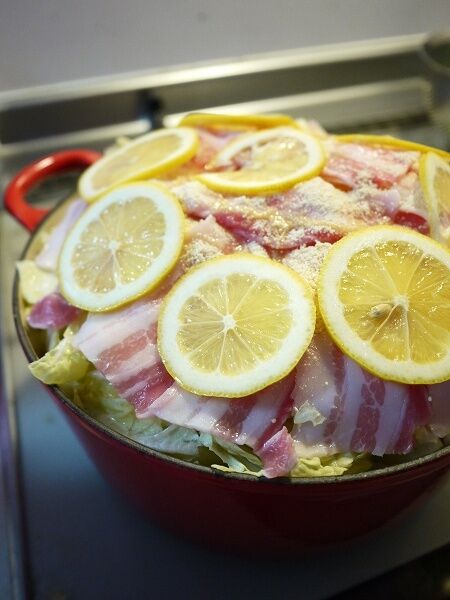 「白菜と豚肉のさっぱりレモン重ね蒸し」