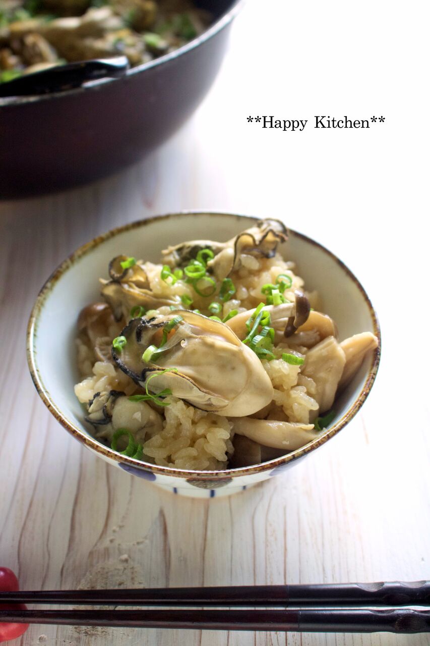 ②お米は洗って炊飯器に入れておく。小鍋にAを入れて火にかけ、ふつふつして来たら①を加えて混ぜながら3分ほど煮て、牡蠣がふっくらして来たら牡蠣をザルにあげる。