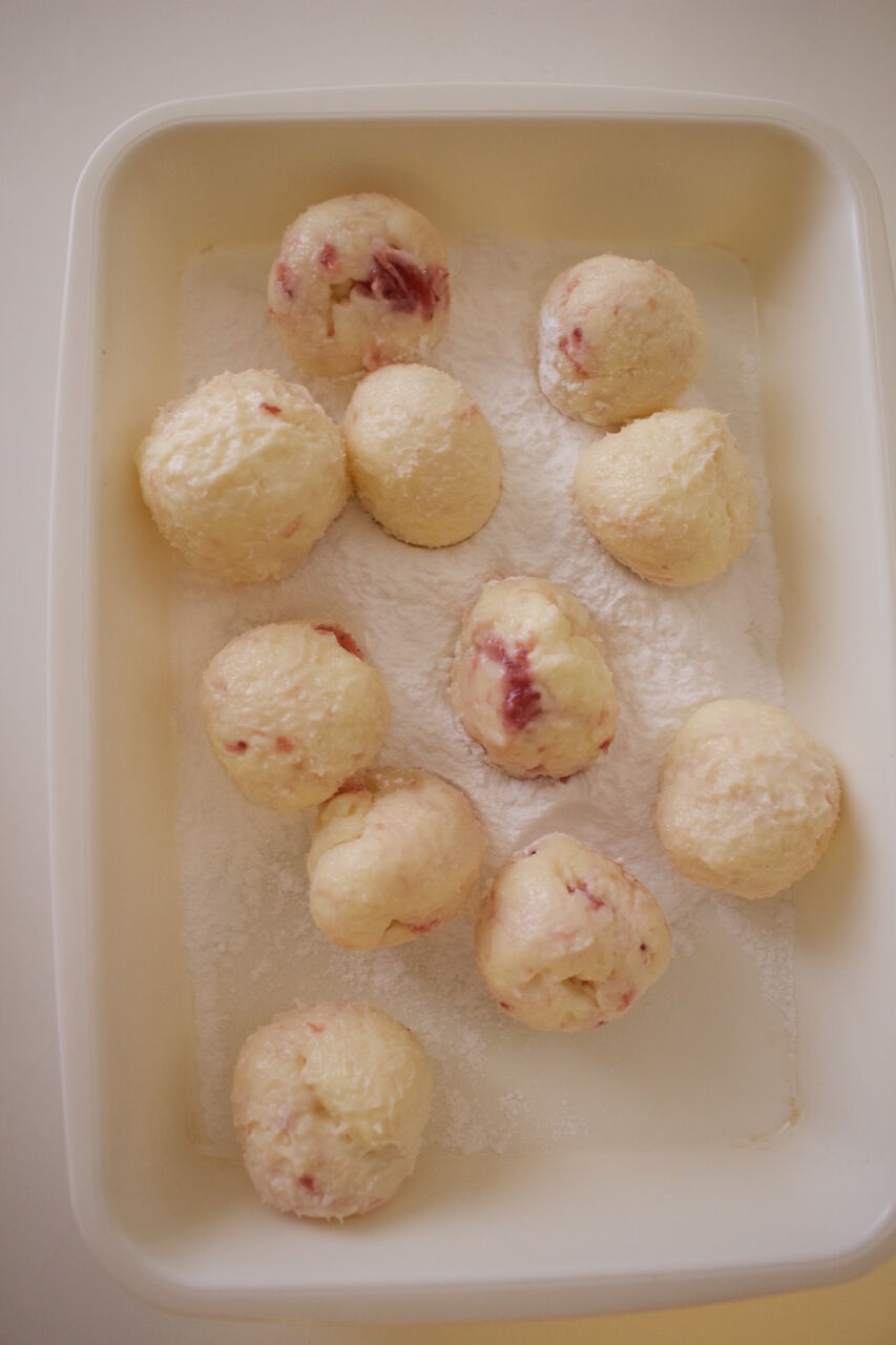 ほんまはこれの中に苺のフリーズドライを入れると、北海道のあの有名な
