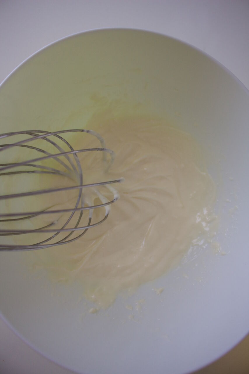 ①クリームチーズを耐熱ボウルに入れてラップなしで600wのレンジで30秒加熱して泡立て器でよく混ぜる。