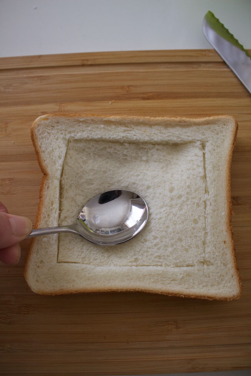 食パンの耳の内側に切り込みを入れて(下まで貫通しないように)