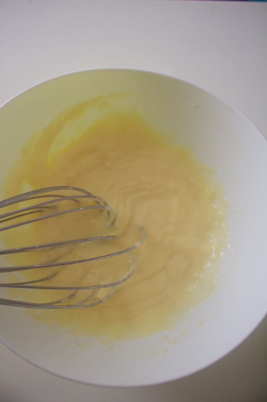↑これを順番通りに耐熱ボウルに入れて、その都度泡立て器でよく混ぜる。