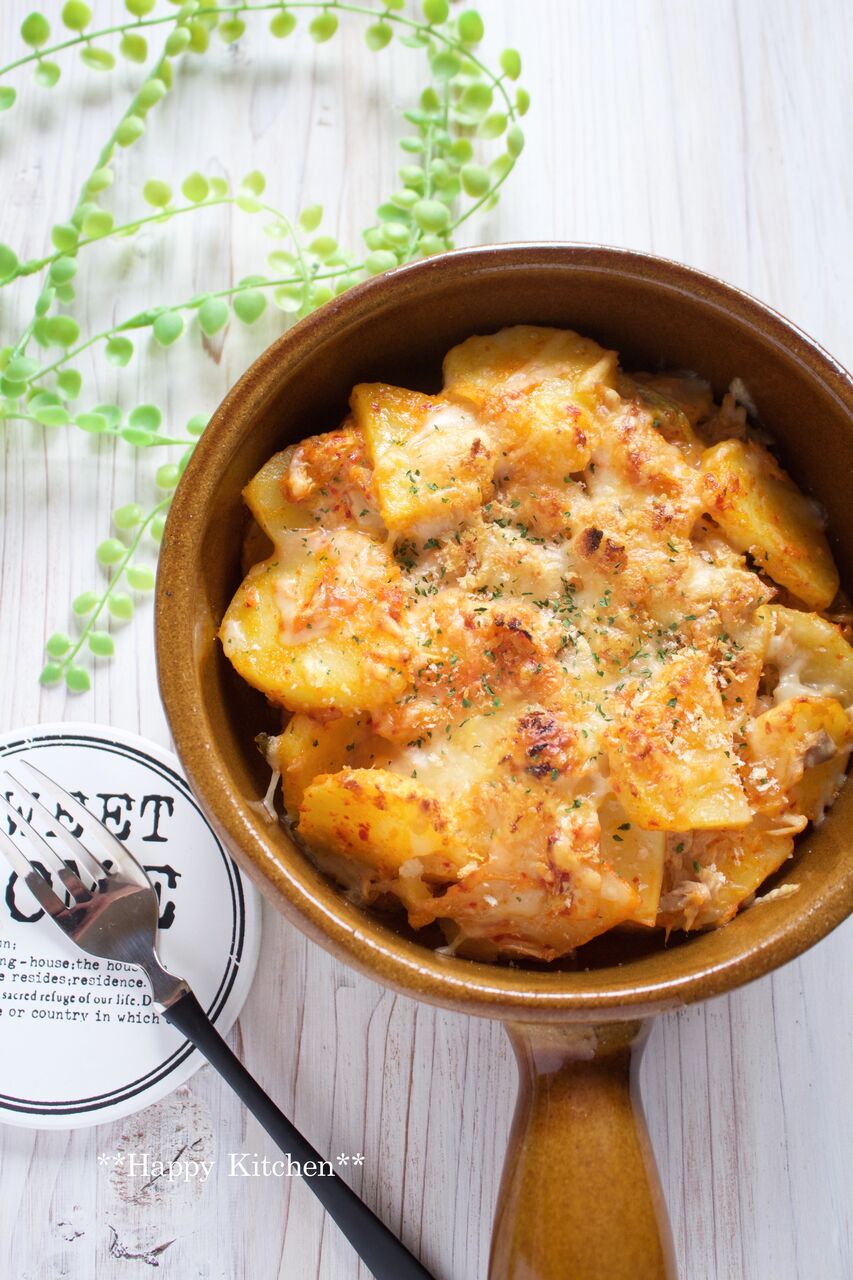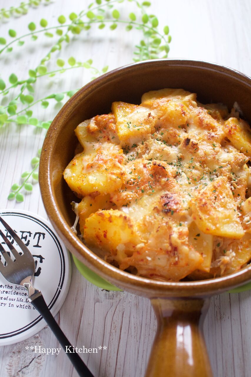 じゃがいもをチンして、混ぜてトースターで焼くだけ、これはビールのおつまみにぴったり!