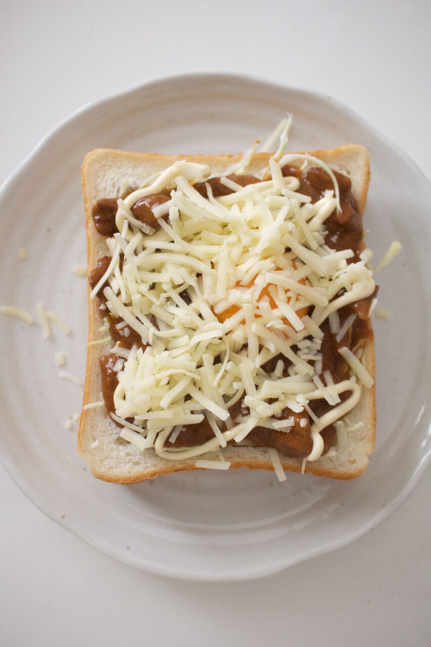 今回の具はたっぷりなので、4枚切りの食パンで。