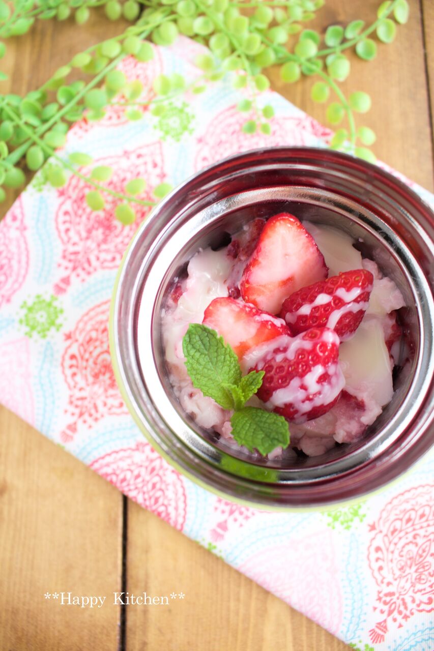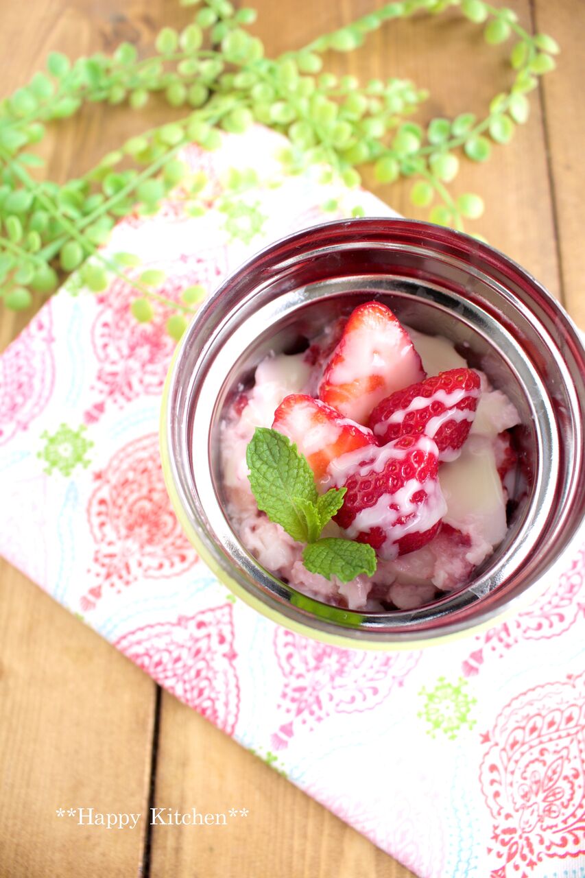 上に苺を乗せてさらに練乳をかけると美味しいです。