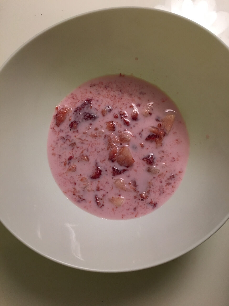 ①ポリ袋にAを入れて苺を手で潰し(塊が残ってもOK)、容器に移す。