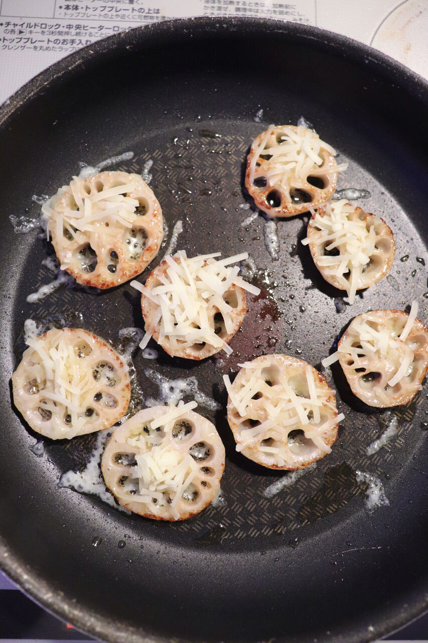 蓮根の穴から溶けて落ちたチーズをこんがり焼いた方が美味しいです。
