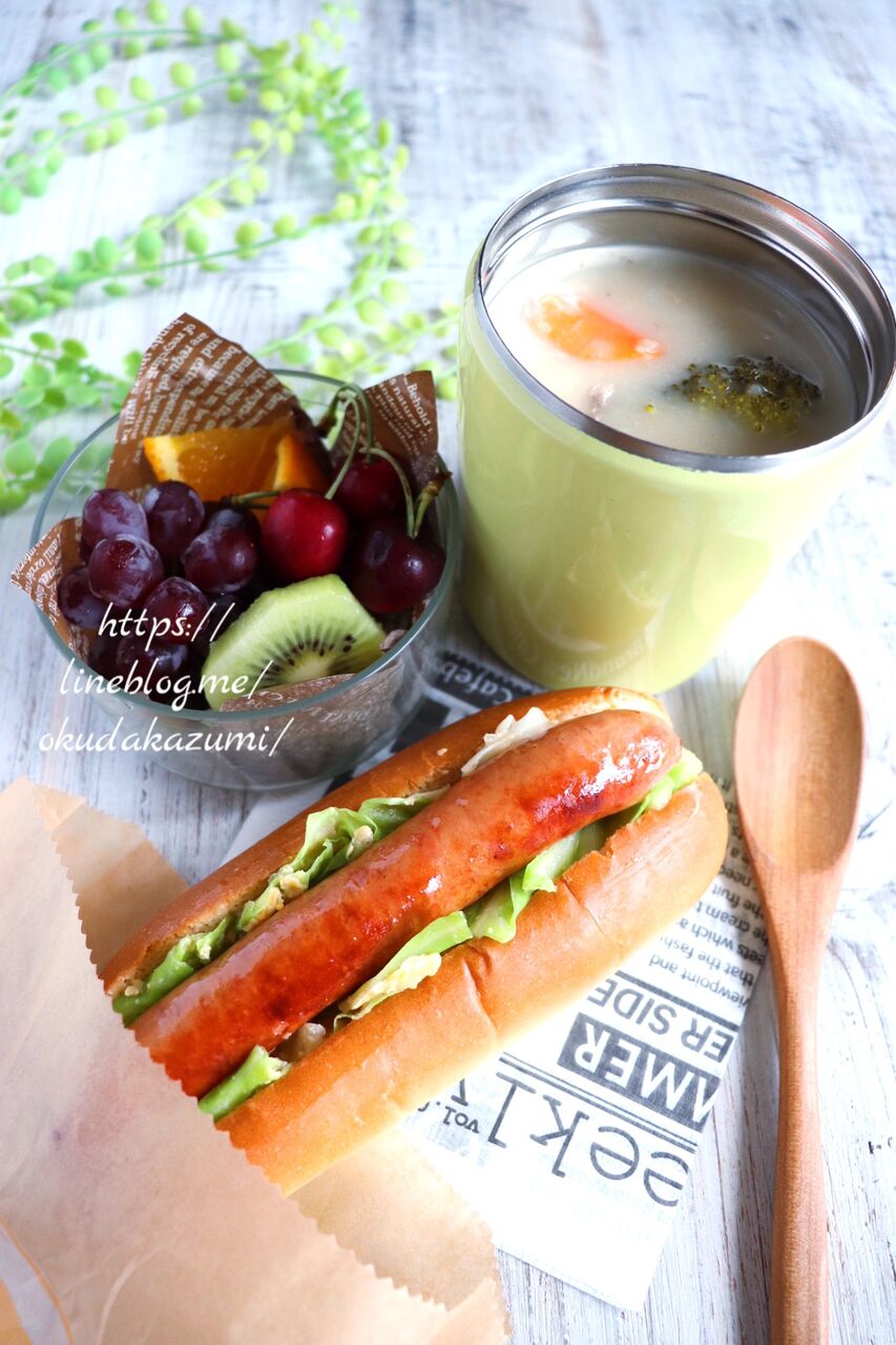 昨日の残りで今日はシチューなので、ホットドッグを合わせました。
