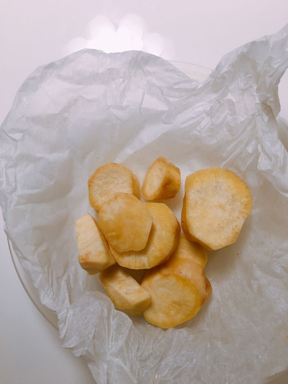 ※耐熱容器の上にクッキングシートを乗せて包んでチンするとさつまいもの表面もふっくら柔らかくなります