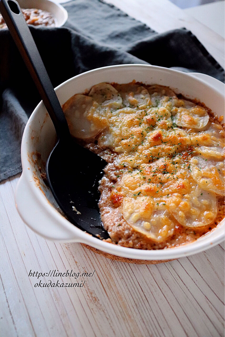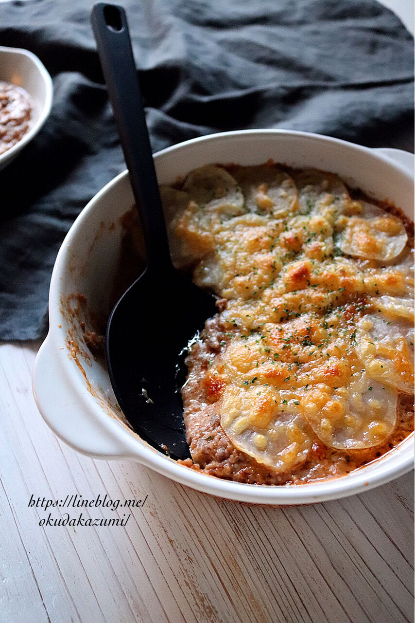 薄切りのじゃがいもを使って作る、簡単なラザニア風。