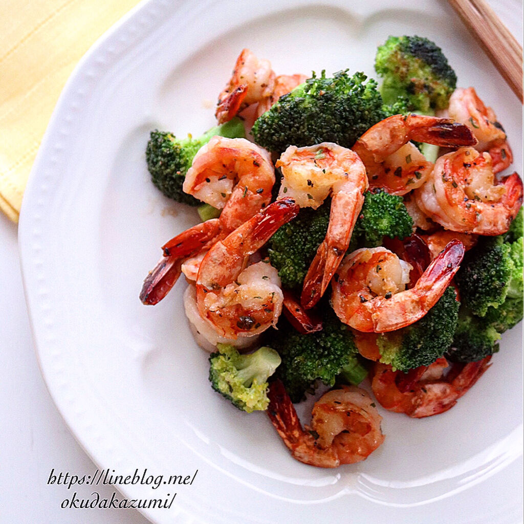 ②熱したフライパンに①を漬けだれごと入れて焼き、海老の色が変わったらブロッコリーを加えて蓋をし、弱火で1分蒸す。