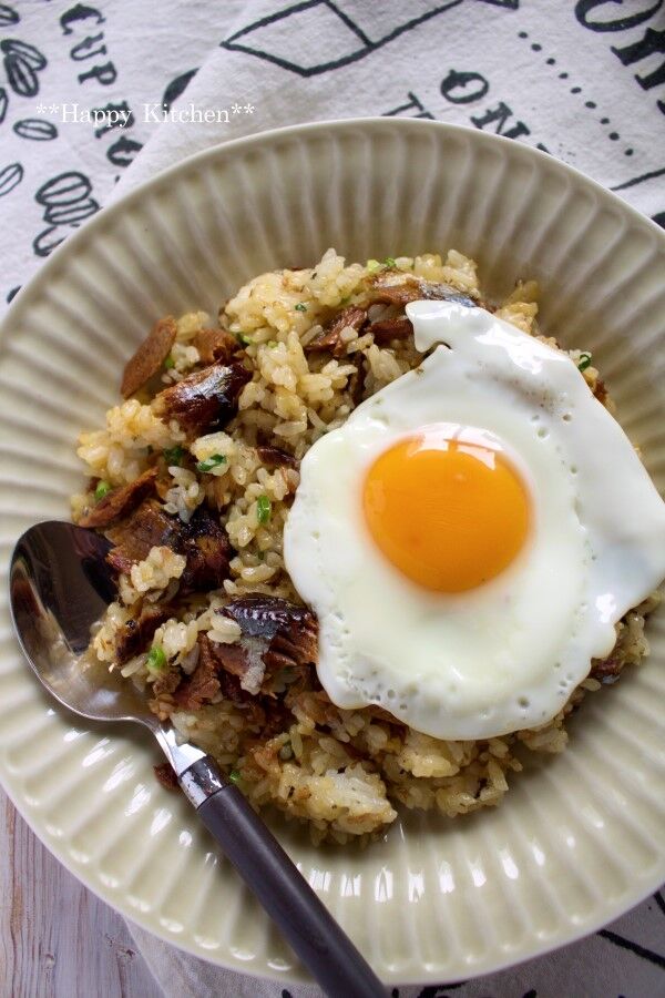 ①耐熱容器に全てを入れてふんわりラップをかけて600wで2分加熱してよく混ぜる。(目玉焼きはお好みで)