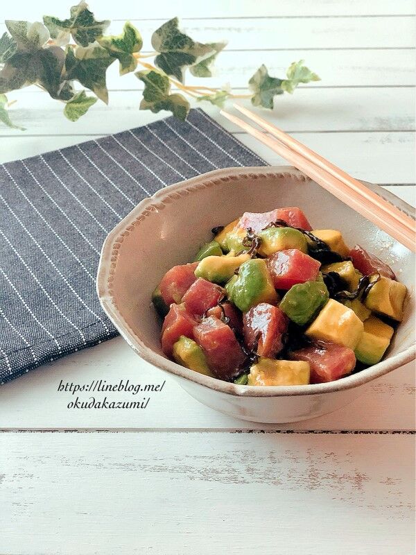 【アボカドとまぐろの塩昆布あえ】
