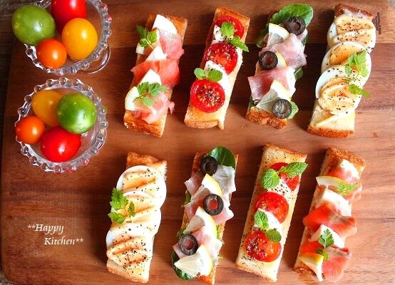 トーストを切って具を乗せるだけで華やかになるスティックオープンサンド。