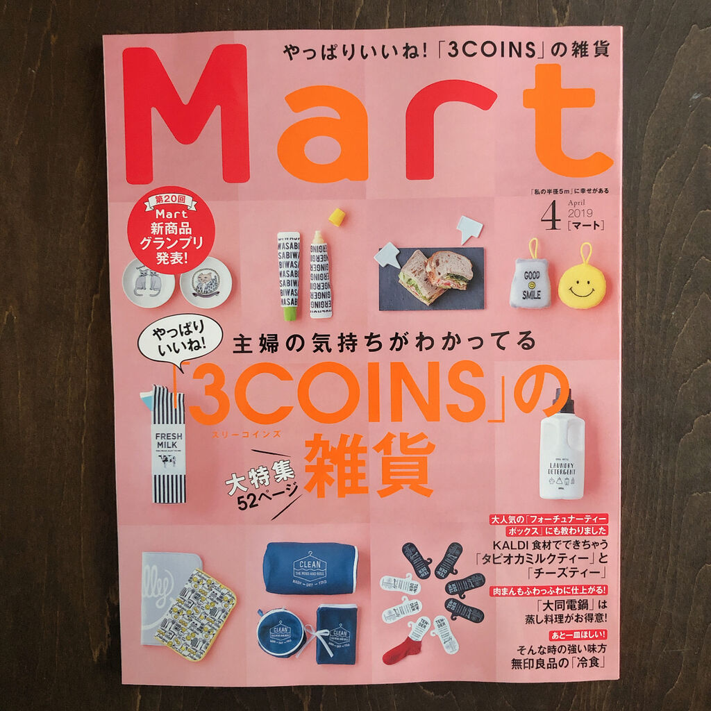 「Mart」4月号では52ページに渡って「3COINS雑貨」の特集が組まれているんですが、