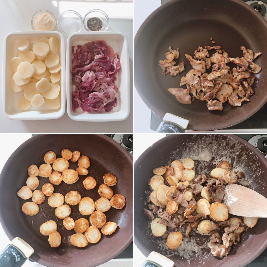 豚肉とじゃがいも、共によく焼くのがポイントなので、基本結構ほったらかしです。