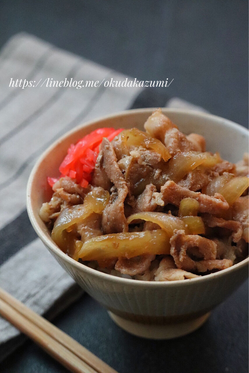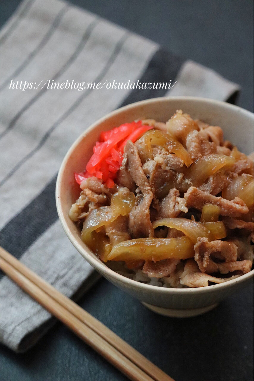 基本ほったらかしで出来て簡単、豚肉でもじゅうぶん美味しい、牛丼のような豚丼。
