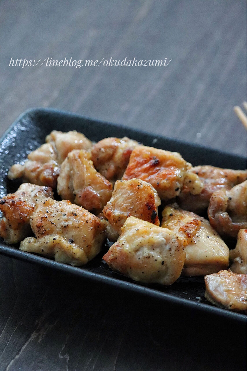 今回は塩味の焼き鳥っぽくしたくてカラッと仕上げました。