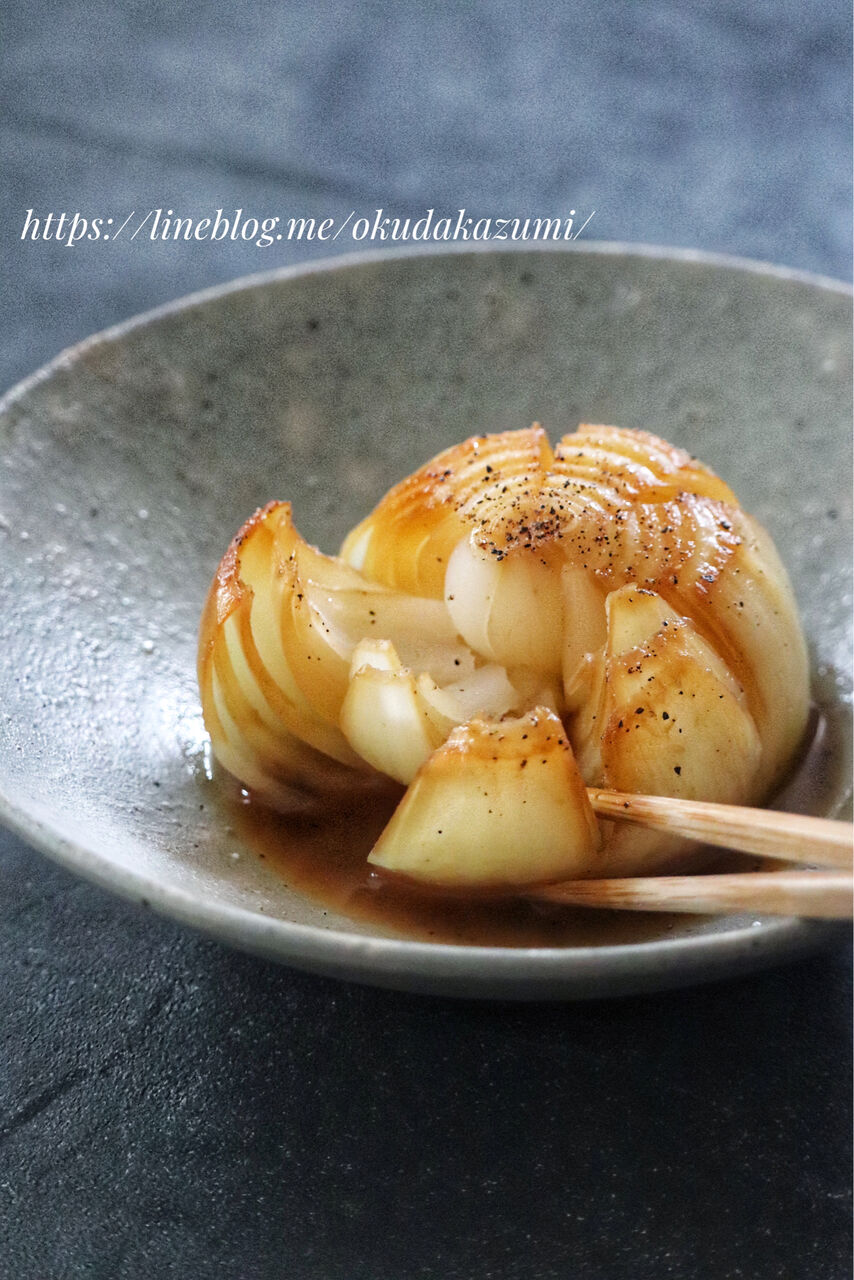 【丸ごと玉ねぎの麺つゆバター蒸し】