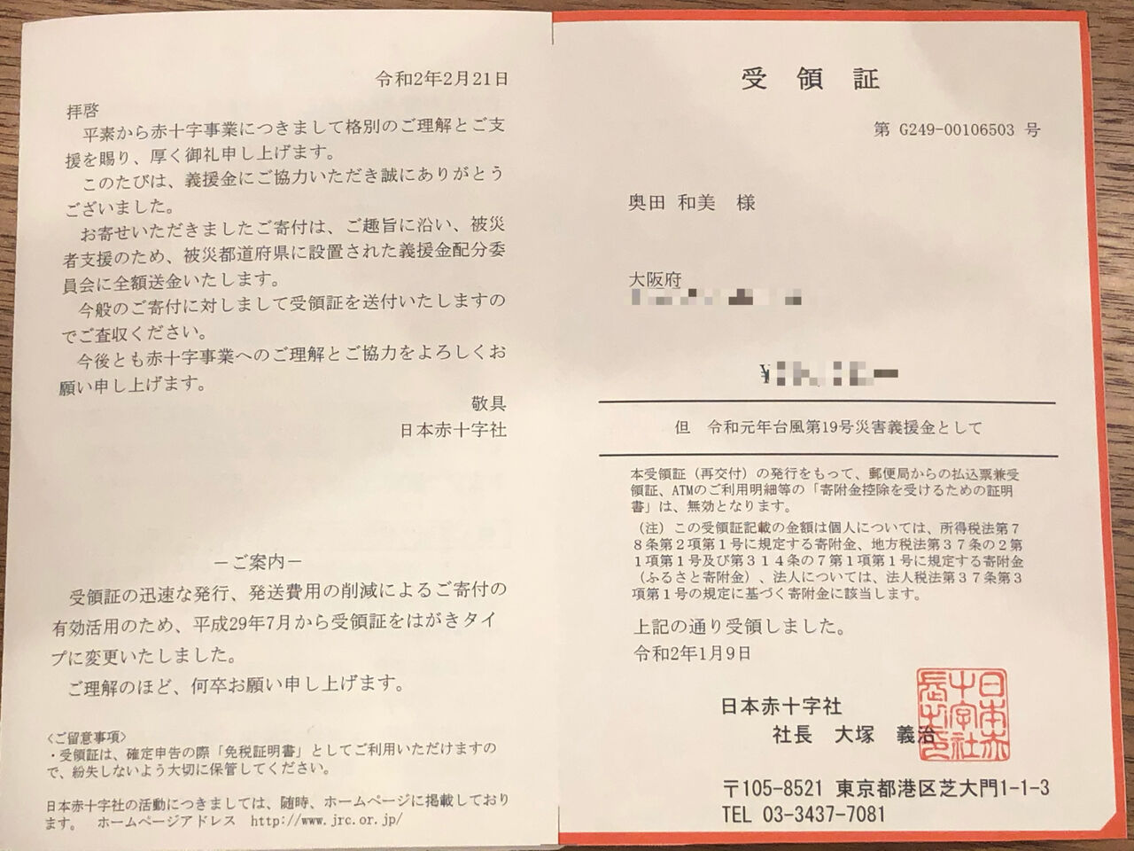 日本赤十字社を通して台風の被災地に寄付させて頂いたのですが、
