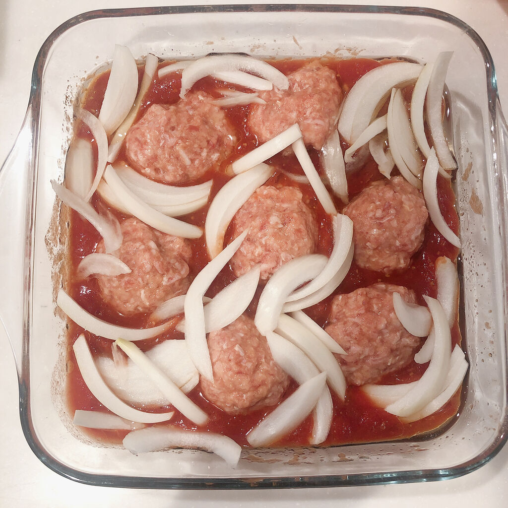 まずは、レンチンで作れるトマトチーズの煮込みミニハンバーグのレシピです。