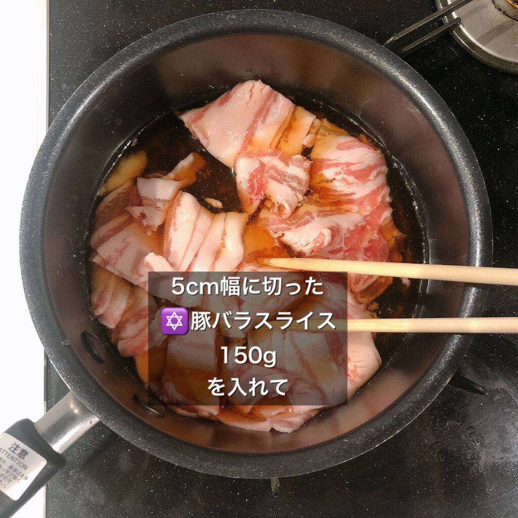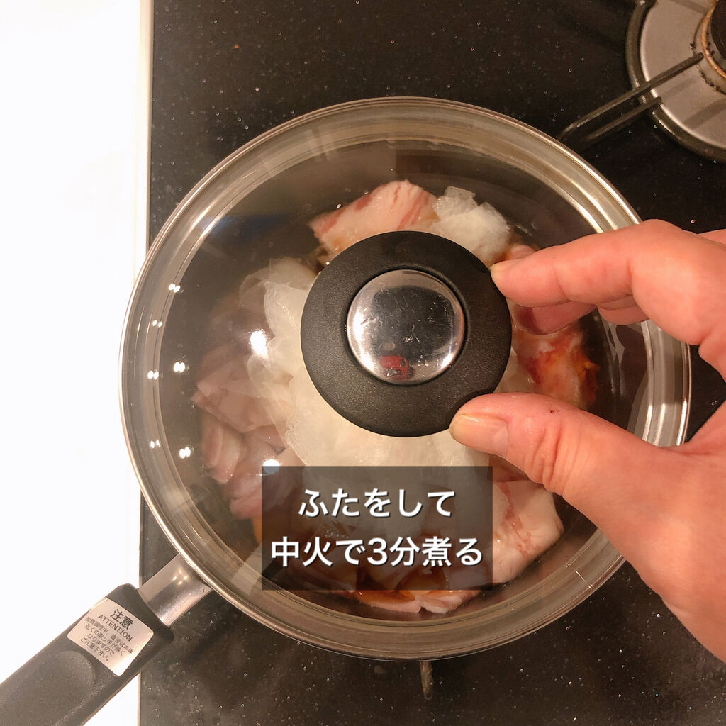 1.小鍋にAを入れ、豚バラ、大根の順に入れる。