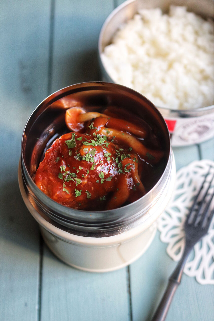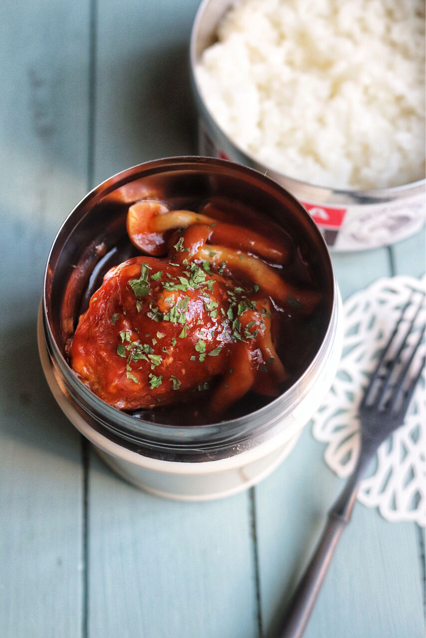 やっぱり煮込みハンバーグは温かいのがいいよね。