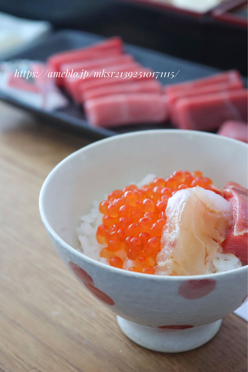 いくらの醤油漬け、まぐろ、鯛を置いといてつまんでもらえたらと思ってたけど