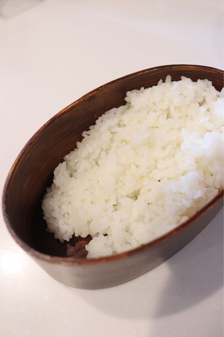 こういう、お肉ドーン!の時は、お肉を乗せる予定の場所に薄くご飯を敷きます。